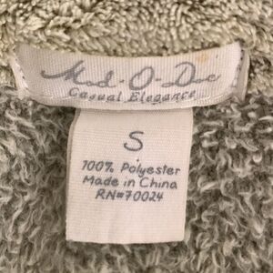Mod-O-Doc Super Soft Fleece Coat. 4 toggle button closure. 100% polyester. 2 front pockets. Approx. armpit to armpit measure is 18 inches. Approx. length is 26 inches.