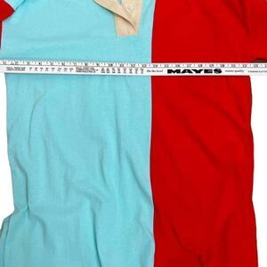 momo New York Shirt Dress Maxi Color Block Red Blue Asymmetrical Hem OS
