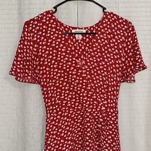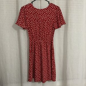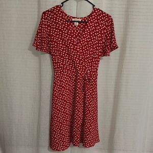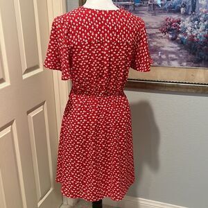 monteau XS Red White Ditsy Floral Flutter Short Sleeve Faux Wrap A-Line Dress
