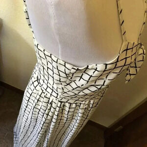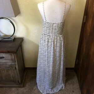 moon Black and White Maxi Dress Plaid Gingham Window Pane Tie Front: M