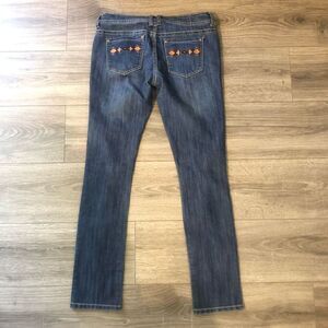 mudd tribal embroidered straight leg fit distressed holes size 5 L30”