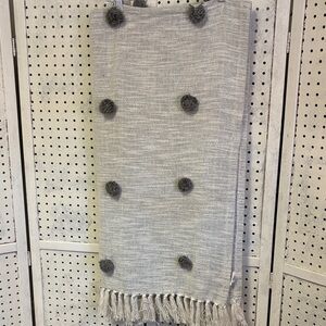 Gray cotton woven throw blanket with gray Pom Pom’s all over it❤️❤️❤️❤️ 50x60