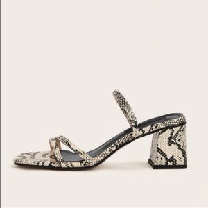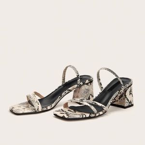 Black and cream snake skin mules