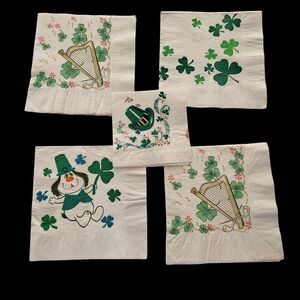 Vintage Paper Party Napkins St Patricks Day Clovers Harp Leprechaun Dog Lot of 5