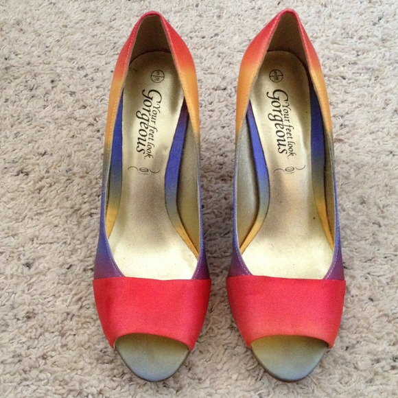 peep toe multi colored high heeled shoes.great for a party.i just used this once.