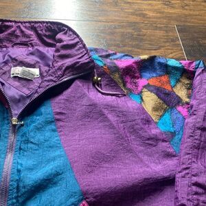 multi colored 90s bomber jacket Diana Marco 100% nylon size 20 vtg color block
