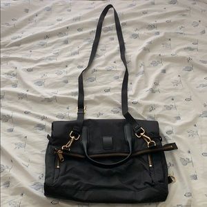 - sleek black w/ gold hardware
