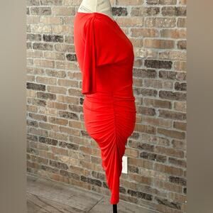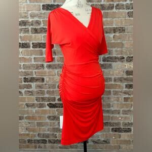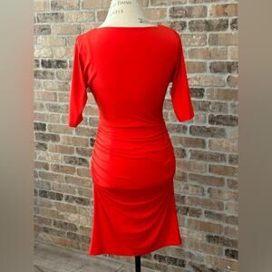 muse for BOSTON PROPER solid red Faux Wrap Dress Bilateral Side Ruched sz 4