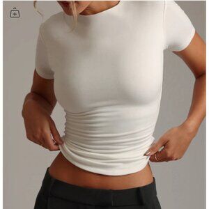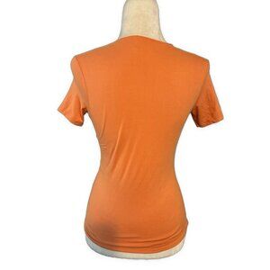 my outfit online Solid orange Crew Neck Fitted Knit Short Sleeve t shirt Small