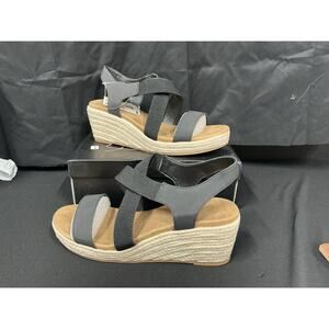 mysoft Women’s Platform Espadrille Wedge Sandals Black Straps Size 9 New in Box