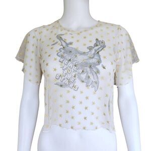 sheer top w/ gold stars. double-sided with icarus falling on the front and wings on the back. designed & printed by me. hand wash inside-out in cold water. no offers will be accepted on handmade items<3