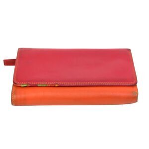 mywalit RED ORANGE GENUINE LEATHER ID CARD COIN HOLDER BILL BIFOLD WALLET PURSE