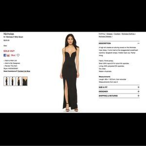 n/ Nicholas | Ponti V Wire Maxi Gown Cocktail Dress in Black | Size 6*