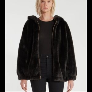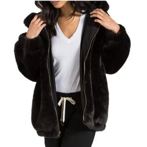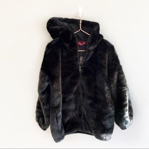 n: PHILANTHROPY Black Faux Fur Full Zip Hooded Coat Jacket New Size Small