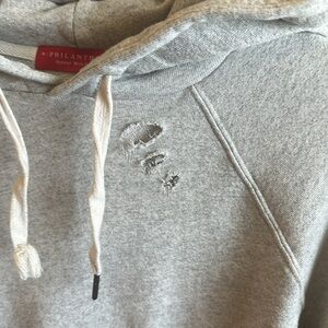 n : PHILANTHROPY Distressed Hoodie Size Large Gray Kangaroo Pocket