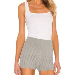 Fitted ribbed bodysuit with square neckline and shirred side seams.