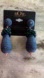 These teardrop earrings have an ethnic flare with large beads covered in navy blue silky cords and adorned with faceted beads. Gold hardware.