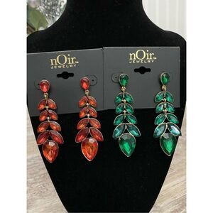 nOir Jewelry red & green gold rhinestone set of 2 pairs earrings