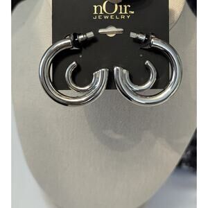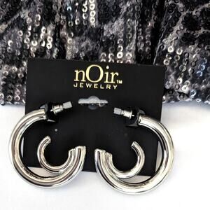 Elevate your style with these modern double hoop earrings by nOir! These stunning silver-tone earrings offer a contemporary twist on a classic design, perfect for adding a touch of sophistication to any outfit.