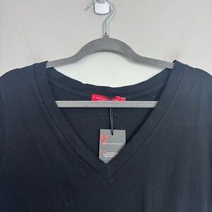 Discover the sleek comfort of the n:PHILANTHROPY black fitted short sleeve t-shirt bodysuit. Crafted with a soft, stretchy fabric, this top offers a comfortable and flattering fit. Its deep V-neckline adds a touch of sophistication, making it a versatile addition to any wardrobe. Snap crotch and thong back. Brand NWT! Women’s size large.