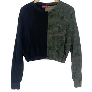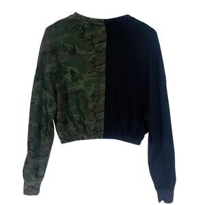 This oversized sweatshirt from n:PHILANTHROPY features a striking black and green color-block design with long sleeves. Crafted from a comfortable cotton blend, it offers a relaxed fit perfect for casual wear. The unique split-design adds a trendy touch to your wardrobe.
