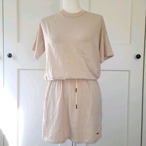 Striped with a crew neck color and a cut out that wraps around the neckline