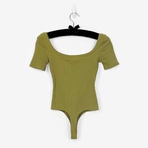 n:Philanthropy Langley Bodysuit Size XS Olive Green Ribbed Cotton Blend Basics