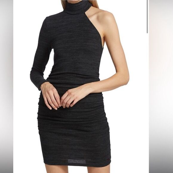 n: Philanthropy Revolve Electra Ruched One Sleeve Mini Dress In Charcoal.Size S