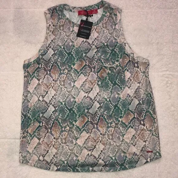 Brand new with tags! Size medium. Very high quality! Nice soft material. Green and tan python print.