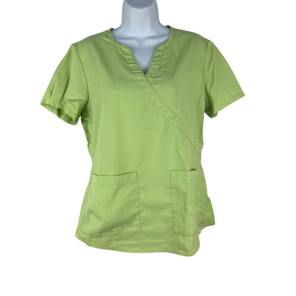nRG By Barco Womens Green Wrap Scrub Top With Pockets Size M