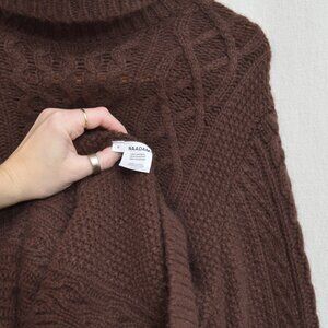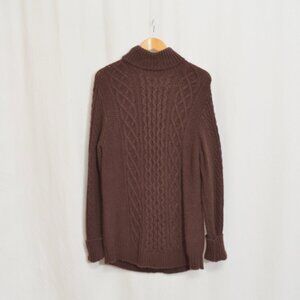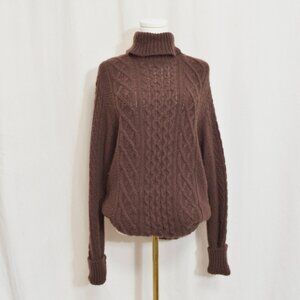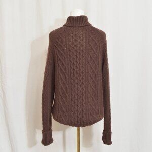 naadam super lux brown turtleneck cable knit cashmere sweater men's medium