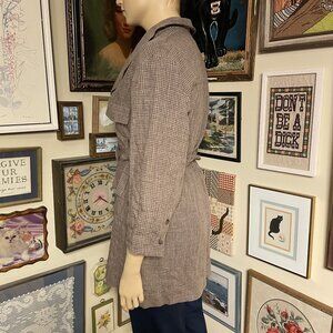 naivelinen Patchouli 13 100% Linen Brown Plaid Lady-Style Trench Coat Size 2X