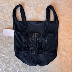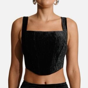 naked wardrobe black velvet bustier top new nwt sz XS textured corset tank mesh