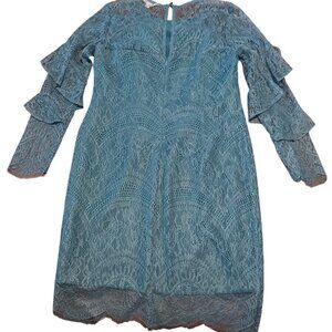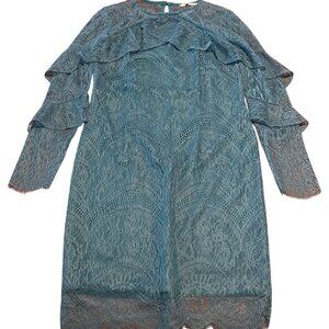 nanette Nanette Lepore Poetic Love Blue Ruffle Trim Lace Shift Dress Sz 4