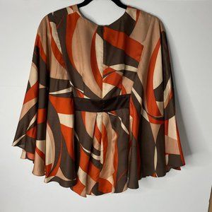 nanette lepore Jeweled Bodice 70's Inspired Silk Bat Wing Top Size 0