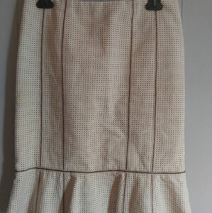 nanette lepore beige Skirt Pencil With Ruffle Zip size 2. Hook is missing, see pictures