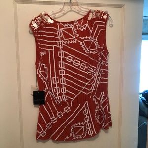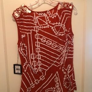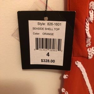 nanette lepore…Seaside Shell Top Orange with white sequins…eye hook closure…brand new…tags attached…size 4…