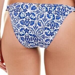 Features: Strappy sides, Silver Tone Hardware, Minimal Seat Coverage