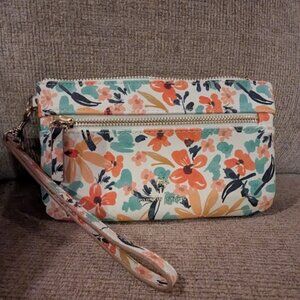 nanette lepore floral wristlet cream and pink and blue