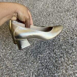 naturalizer gold leather Pumps Block Low Heels Pointed Toe US 4.5 Comfort shoe New