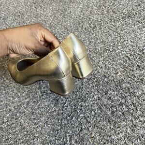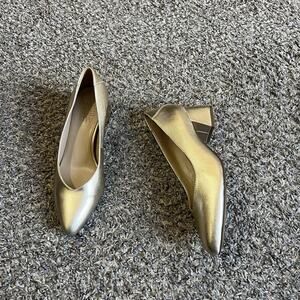 naturalizer gold leather Pumps Block Low Heels Pointed Toe US 4.5 Comfort New