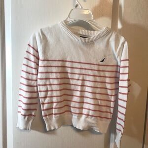 Nautica red/white pull over sweater size medium/5/6 boys long sleeve knit hundred percent cotton 16 inch sleeves 17’ length 15 inch pit to pit P1G67
