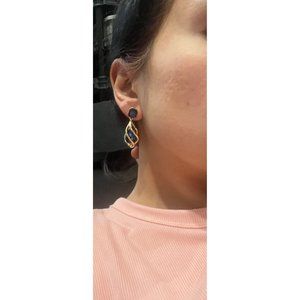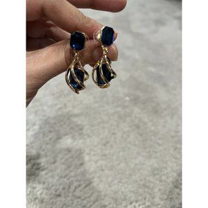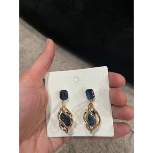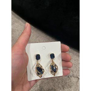 navy blue earrings gold chandelier earrings dark blue wedding crystal earrings