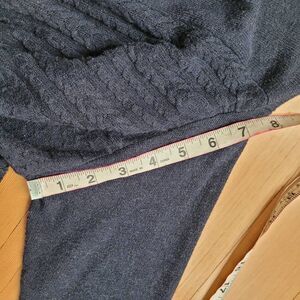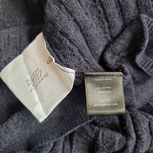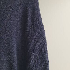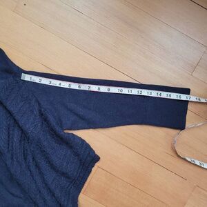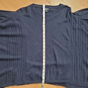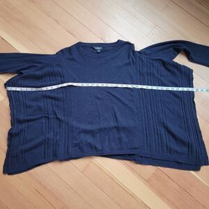 Navy blue asymmetric handkerchief hem dolman style sleeve sweater with open sides and textured detailing on the front. In excellent pre owned condition with minimal wear and no signs of damage as shown in photos. d12