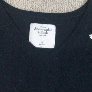 navy blue, thick, v-neck, ribbed on sleaze cuffs and bottom, small slit on each hip, stretchy. size US x-small but would fit size small, made in China.