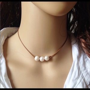 beautiful faux pearl on your choice of either black or brown cord. you may also choose whether you'd like 1 or 3 pearls! opens/closes w a lobster clasp. I make these 16", but if you'd like longer or shorter just let me know! 16" is what's shown in the pictures. :) this listing is for TWO necklaces of your choice
