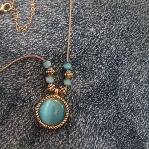 necklace vintage 1980s gold tone and blue cats eye 9"