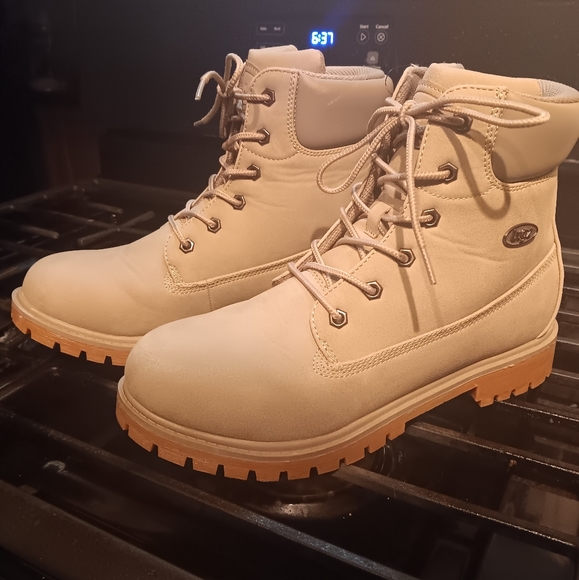 lugz mens boots, size 9 1/2 gray/dusk army green/military green, worn once, very good condition