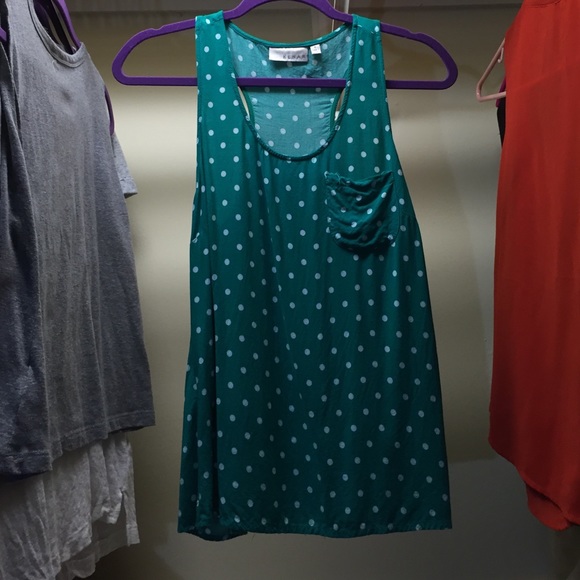 blue\green with white pocka dots