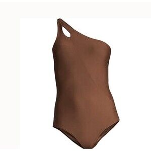 new $100 Lands End swimsuit Chlorine Resistant Tummy Control 1 Shoulder 18 brown